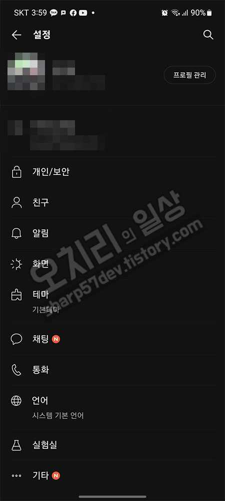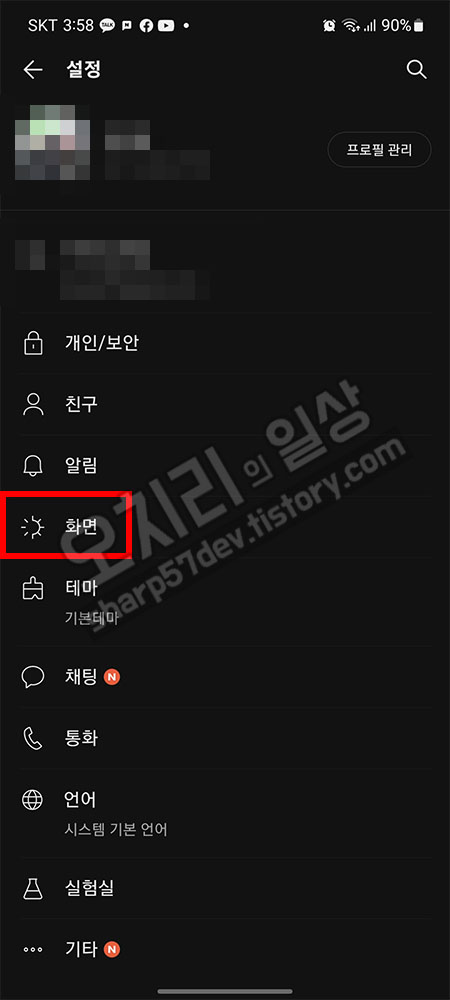 이번에는 다른 앱에는 영향을 안주는 카카오톡에서만 글자 크기를 조절해 보겠습니다.