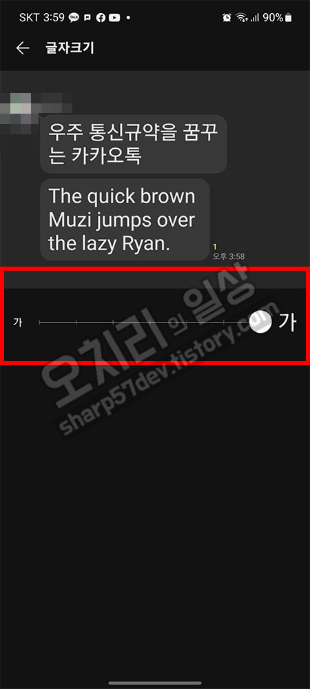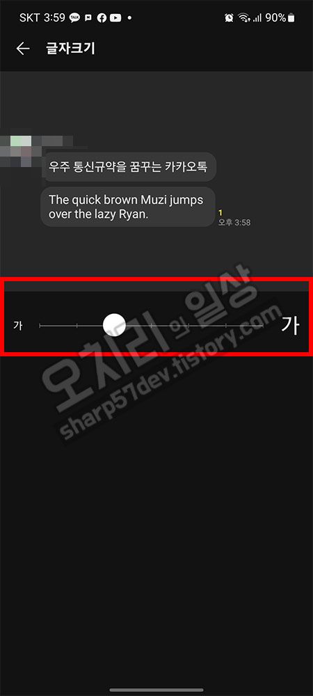 카카오톡에서의 "글자크기"설정도 핸드폰 "글자 크기" 설정과 크게 다를 것이 없었습니다.