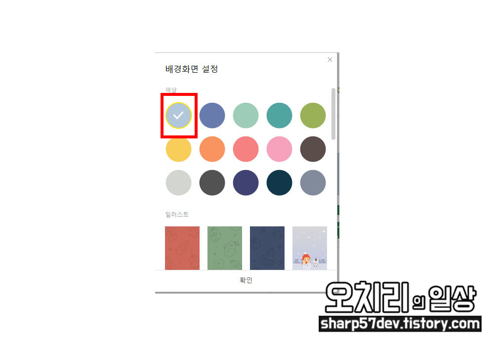 "배경화면"버튼을 누르면 그 아래로 색상, 일러스트, 사진을 선택할 수 있게 화면이 펼쳐집니다.
