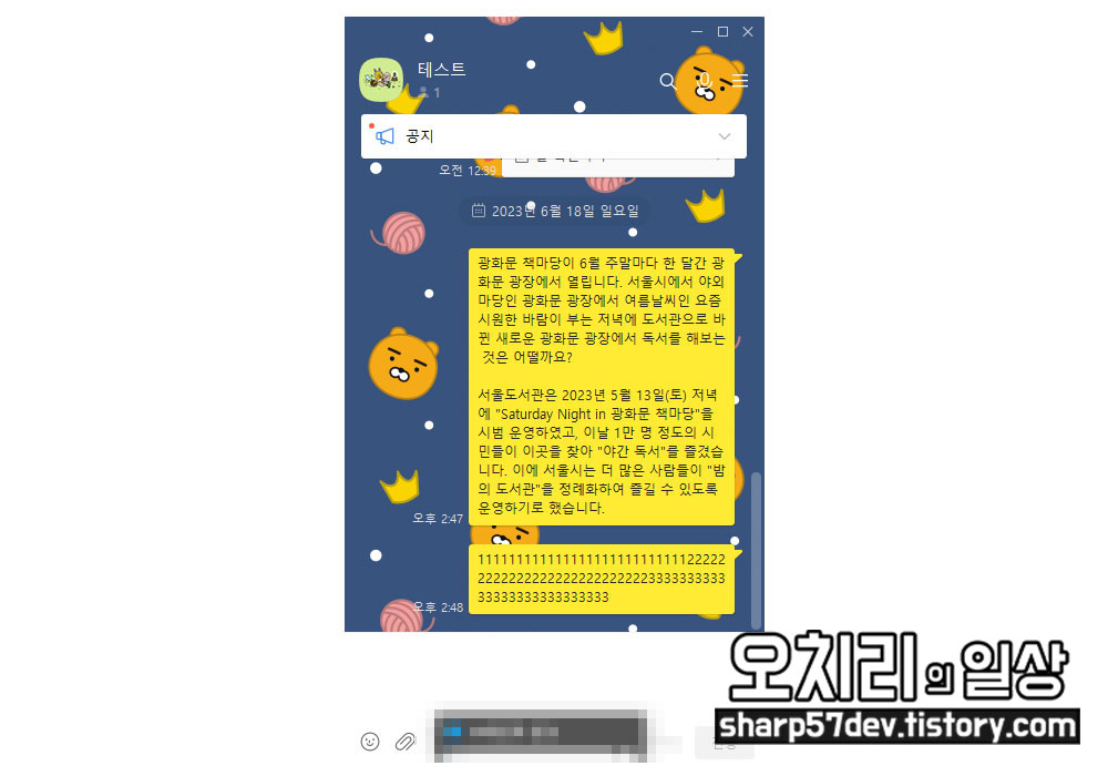 다른 B채팅창에는 일러스트로 된 배경화면으로 꾸며보았습니다.