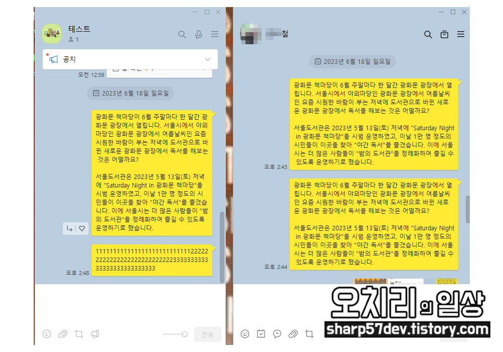 이렇게 다른 배경화면을 가지고 있었던 두 채팅방이....