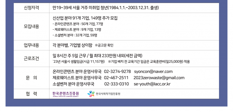- 소셜벤처 운영사무국 02-333-0310 / se-youth@lacc.or.kr
