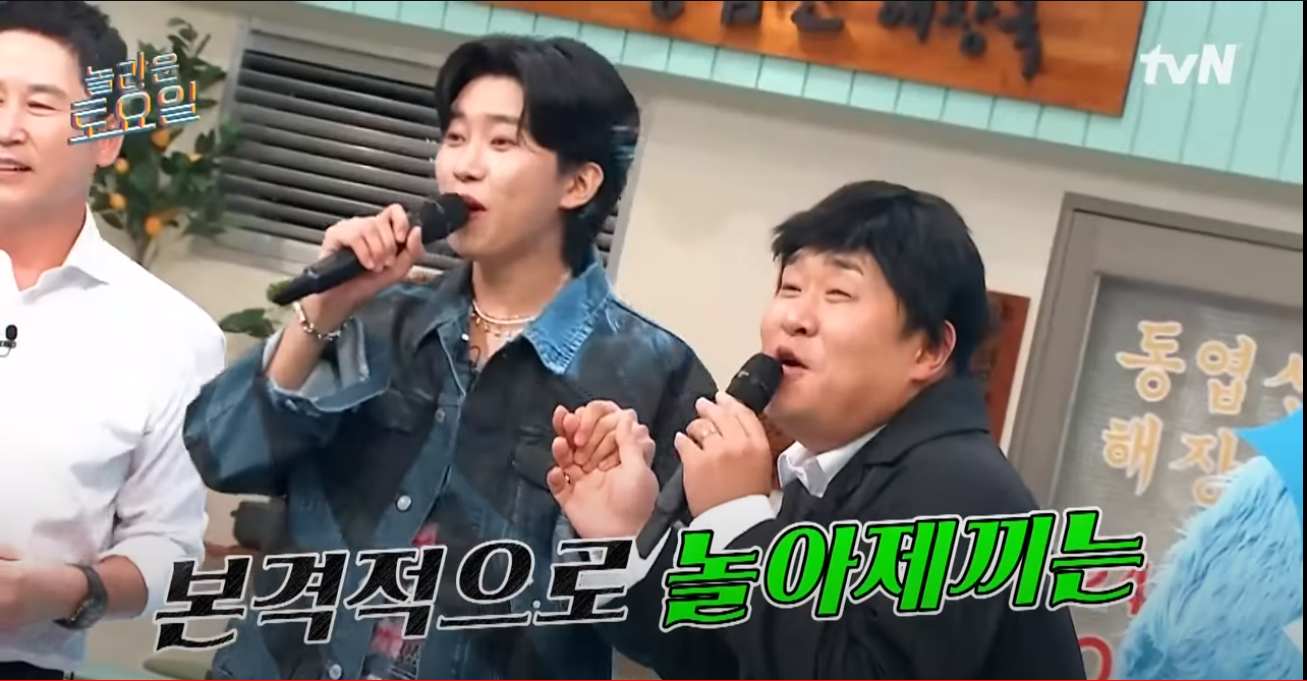 이번엔 무슨 코너일까요? 임영웅이 노래를 부르고 옆에서 문세윤도 노래를 같이 부르고 있습니다.