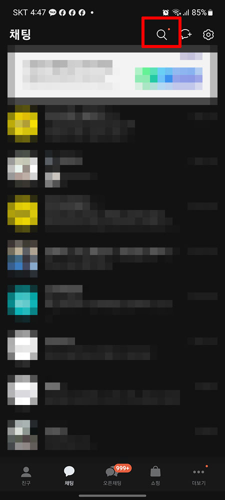 카카오톡 메시지 검색하는 방법 - 전체/채팅방/메시지/채널/쇼핑/오픈채팅/뷰/이모티콘 통합검색
