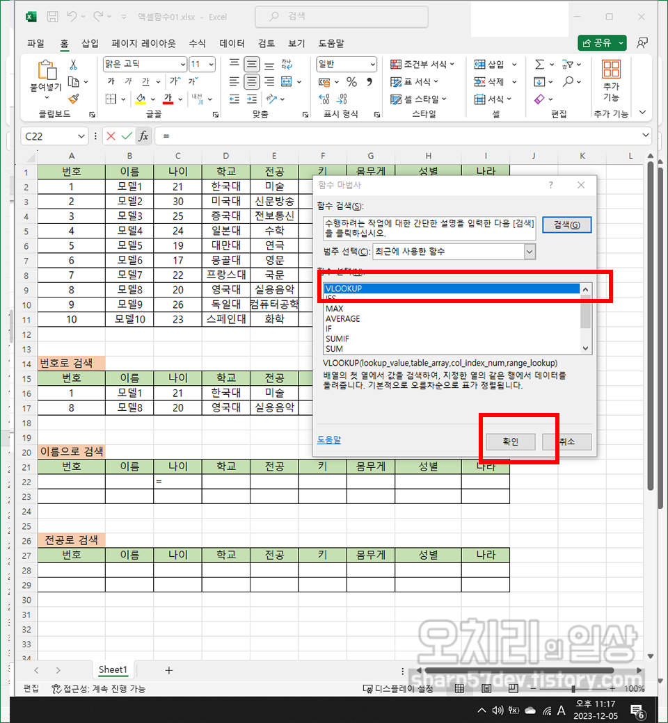 엑셀 함수 VLOOKUP 사용방법을 쉽게 알아보자