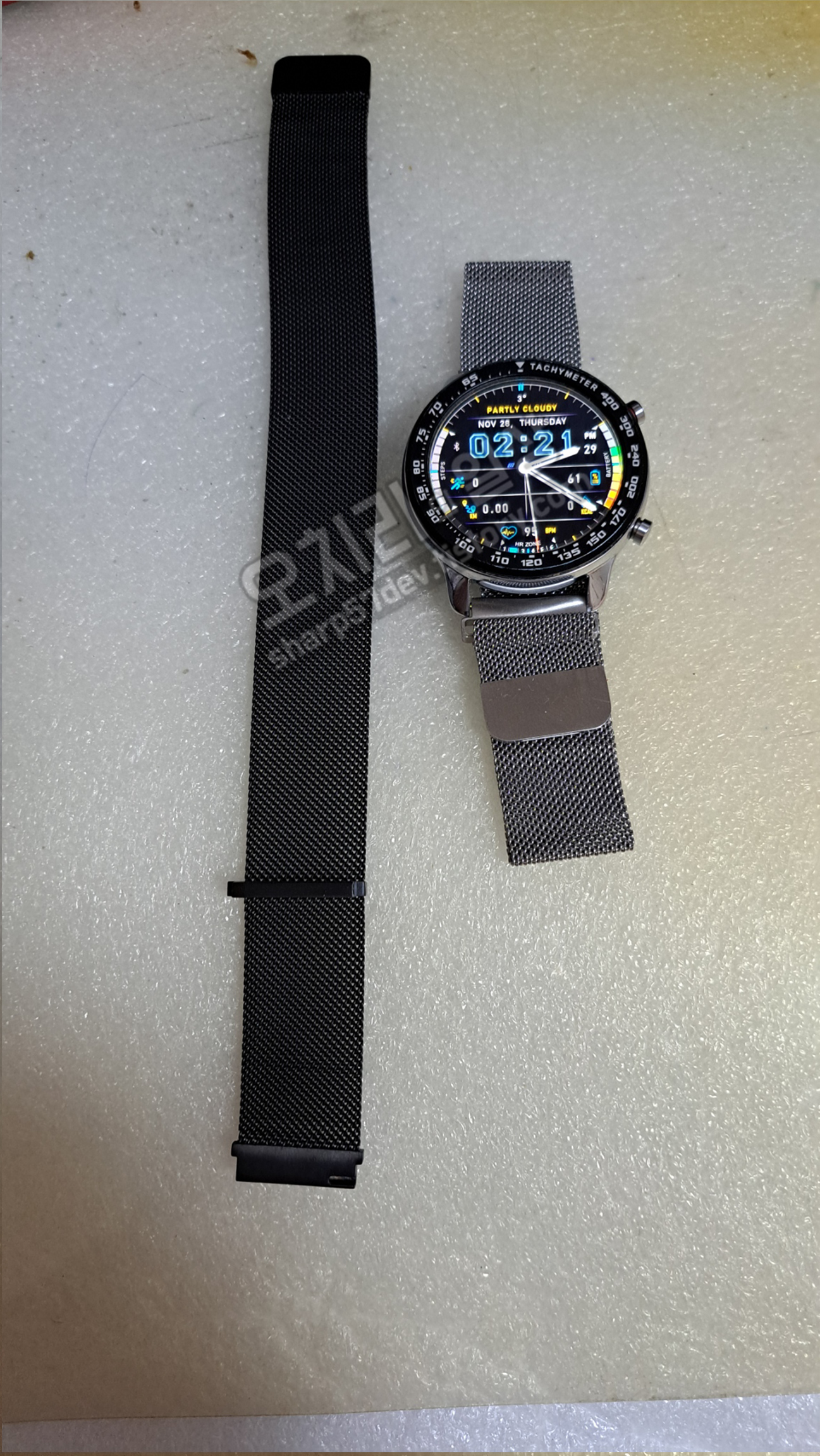 제가 구매한 메탈 마그네틱 스트랩 두개 입니다. 은색 스트랩은 이미 스마트워치에 끼웠습니다. 그리고 검정색 스트랩은 제가 입을 옷에 맞추어 패션에 따라 바꿔 끼우려고 합니다. 아무래도 보통 때에는 검정색보다 은색이 더 무난해 보였습니다.