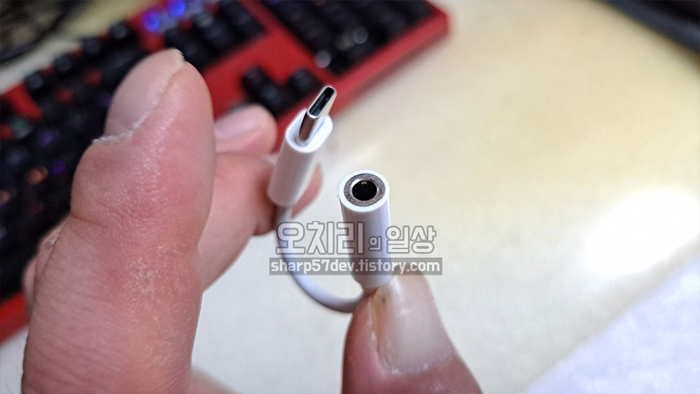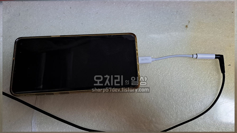 그러게 되면 위 사진처럼 보기에는 좀 이뻐보이지는 않습니다. 젠더도 끼어야 하고 헤드폰의 오디오 단자도 끼워야 하기 때문입니다. 또 이렇게 젠더를 연결하게 되면 스마트폰의 C타입포트에 충전케이블을 연결할 수가 없기 때문에 케이블로 충전하면서 헤드폰은 사용할 수가 없습니다. 이 부분이 무선 블루투스 헤드폰이 아니라는 것에 아쉬운 점이 되겠습니다.