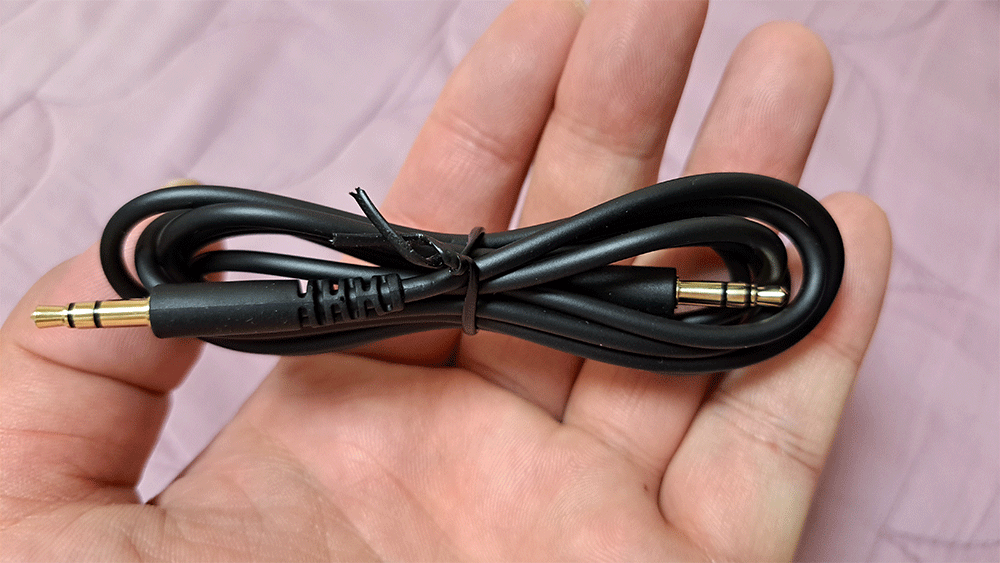 그리고 양쪽 짹이 3.5파이 케이들이 동봉되어 있어 블루투스 무선 헤드폰도 되지만, 이 케이블을 헤드폰에 꼽고 오디오 AUX OUT 단자에 연결하면 유선 헤드폰으로도 사용할 수 있습니다.