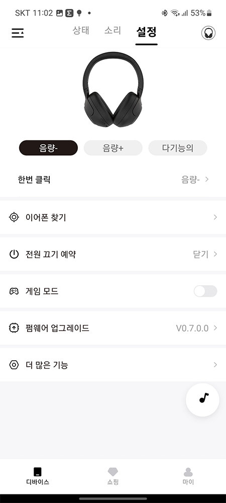 설정에서 헤드폰의 버튼들을 커스텀하여 내가 원하는 버튼으로 변경할 수 있습니다.