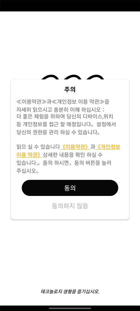 앱을 실행하여 동의를 클릭하고 앱 권한에 허용을 누르고 다음 설치방법들을 따라 이행합니다.