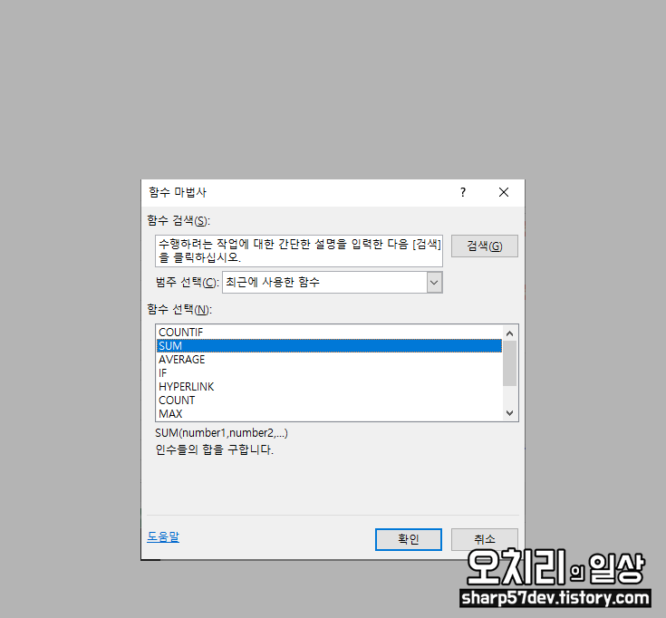 함수 마법사 창이 출력됩니다.