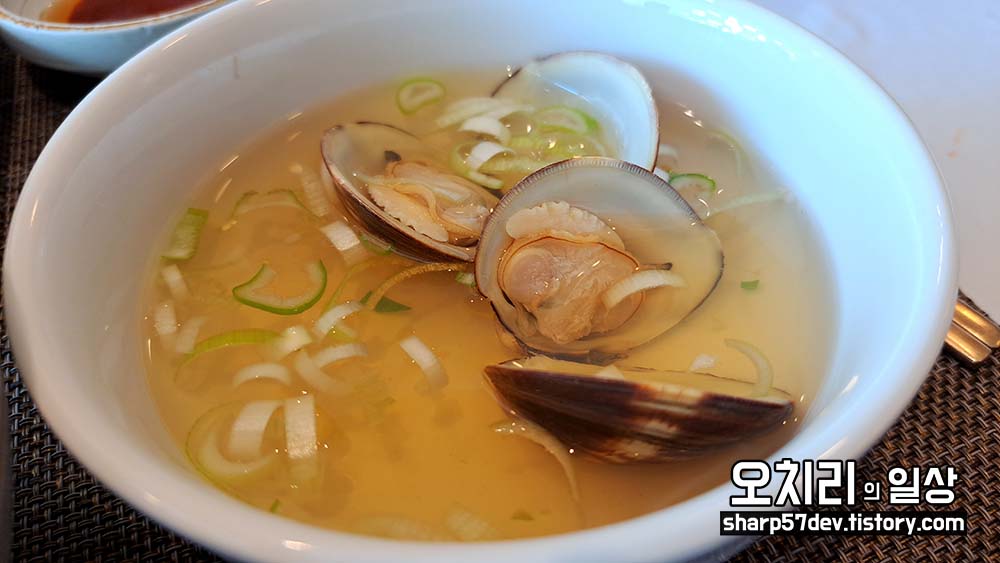 백합탕 시원한 국물이 끝내 준다는!! 정말 비빔밥을 먹고 백합탕을 시원~하게 마셔주었습니다.