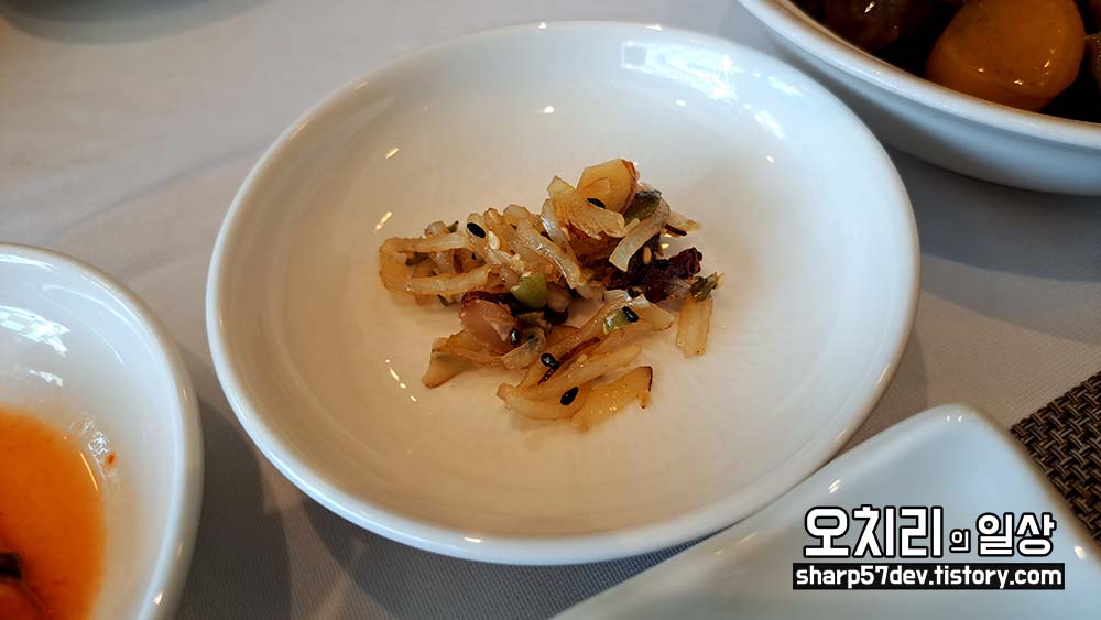 이 반찬은 뭔지 잘 몰라서 큰어머니께 물어보았습니다. 실치로 만든 찬이라고 하시더라고요. 작고 얇은데도 쫄깃쫄깃 씹는 맛이 좋았습니다.