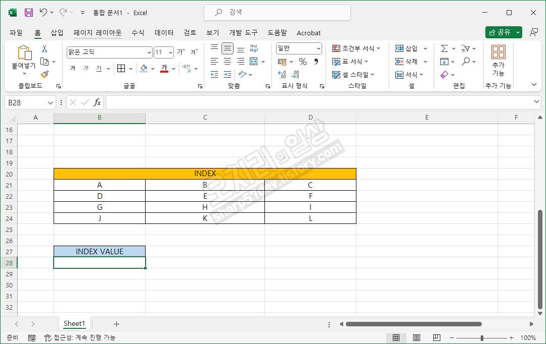 셀 B28에 함수를 적용하겠습니다.