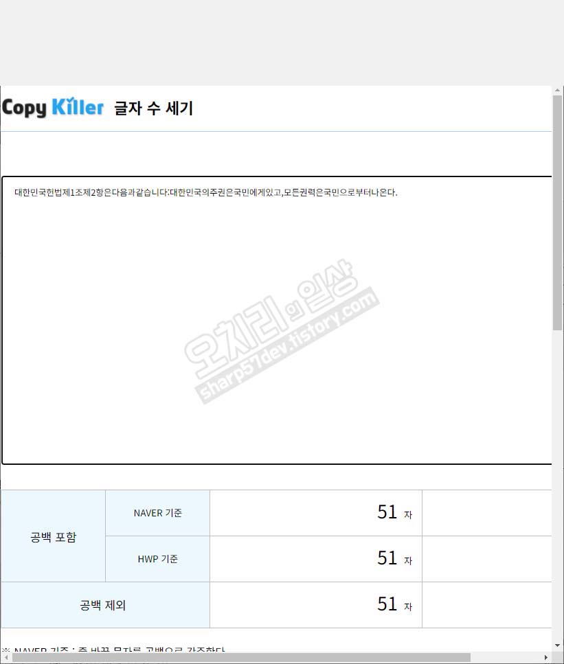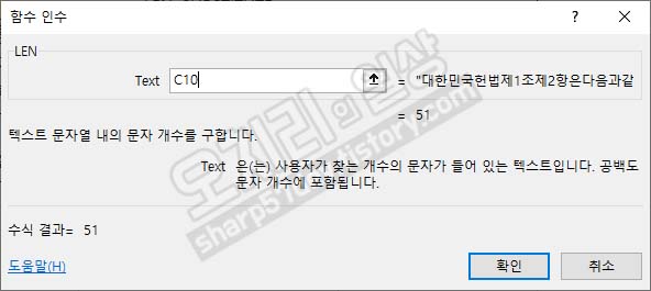 이렇게 문자열의 문자수를 구하는 함수 LEN은 '네이버 글자 수 세기'에서 51개로 같은 글자 수를 구하게 됩니다.