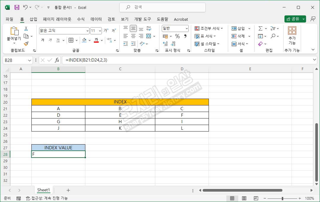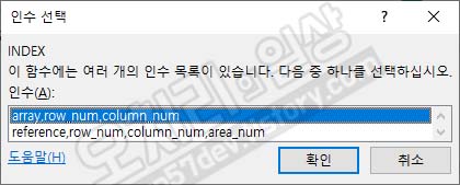 그럼 이제 INDEX함수를 사용합니다