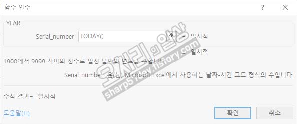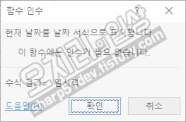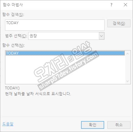'TODAY()'함수를 넣습니다. 확인버튼을 클릭하여 줍니다.