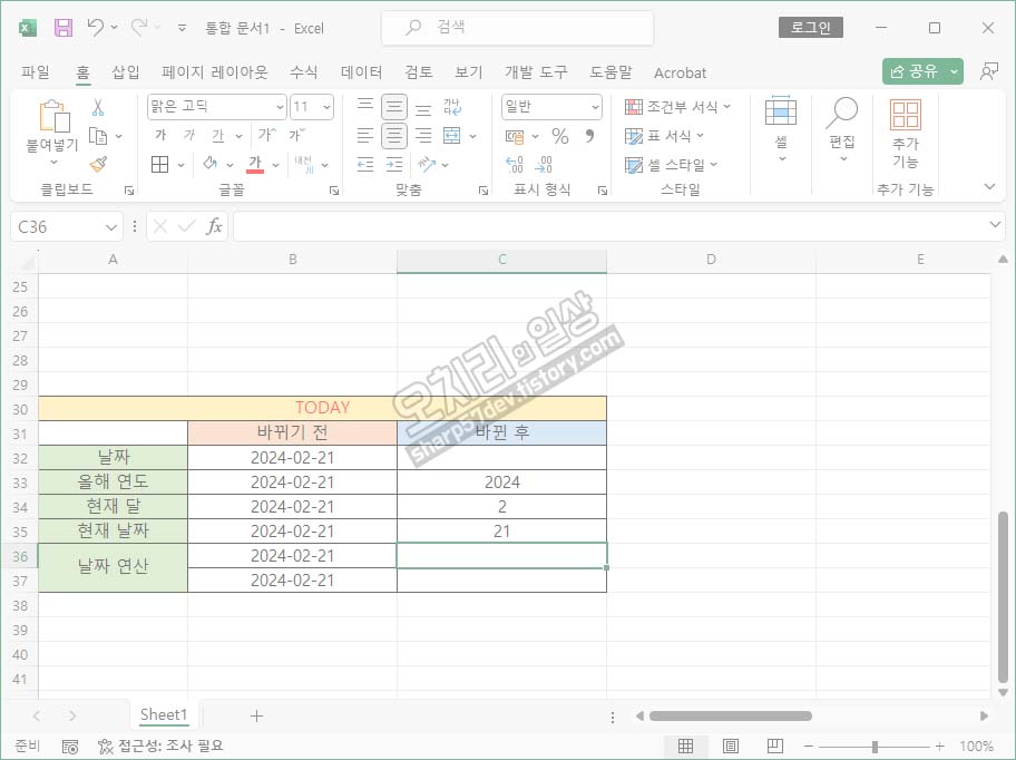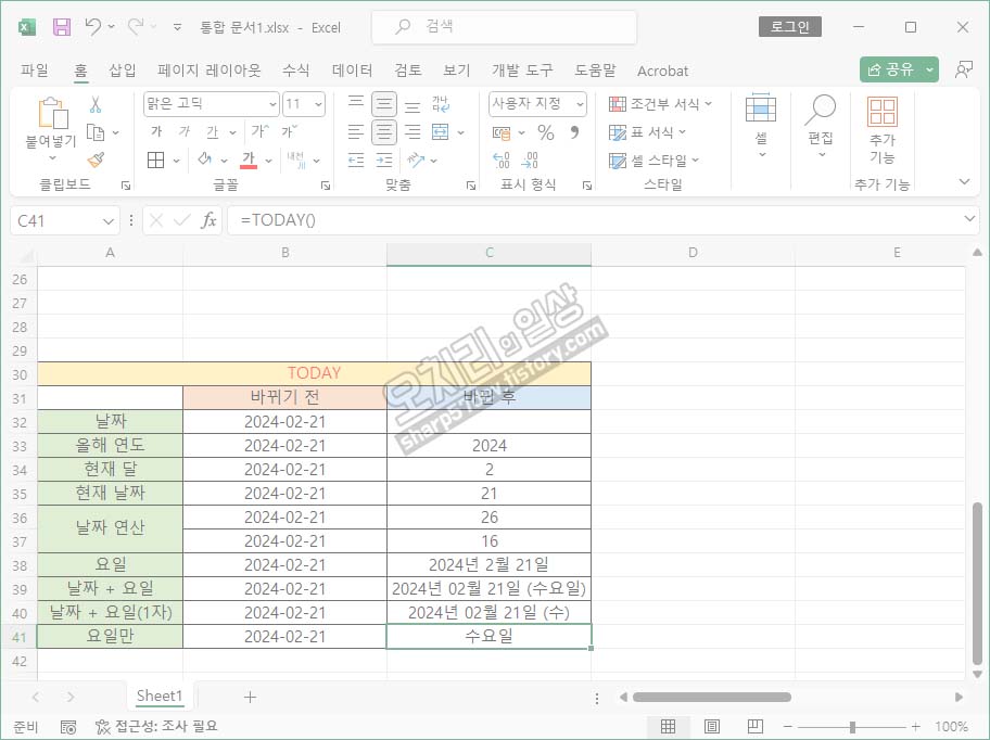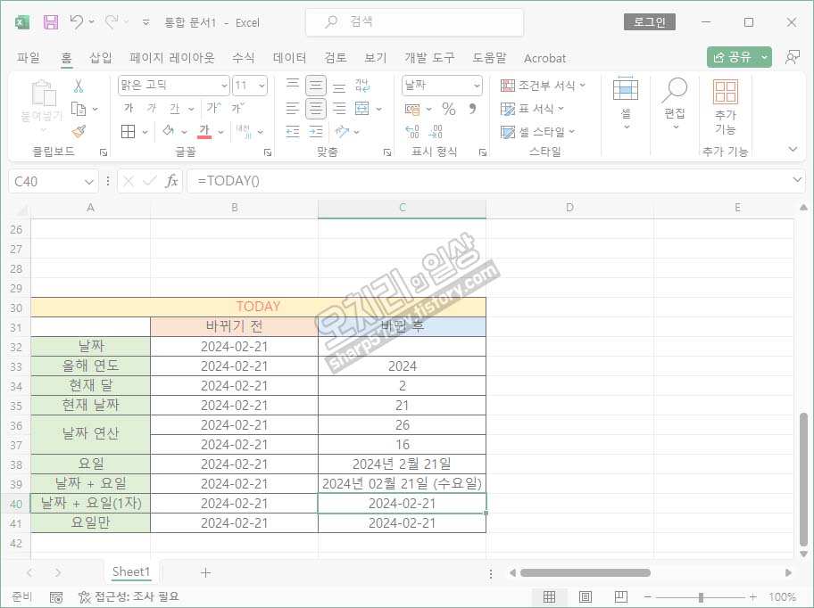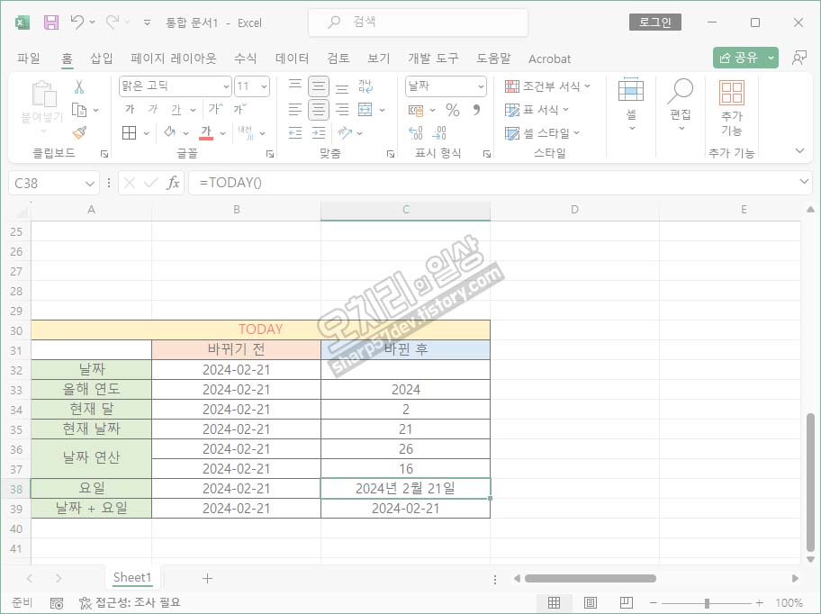 하지만 엑셀에서는 간단한 함수든 복잡한 함수든 다 쓸모가 있는 함수이므로 'TODAY' 함수 또한 알아두면 사용할 데가 있는 함수입니다.