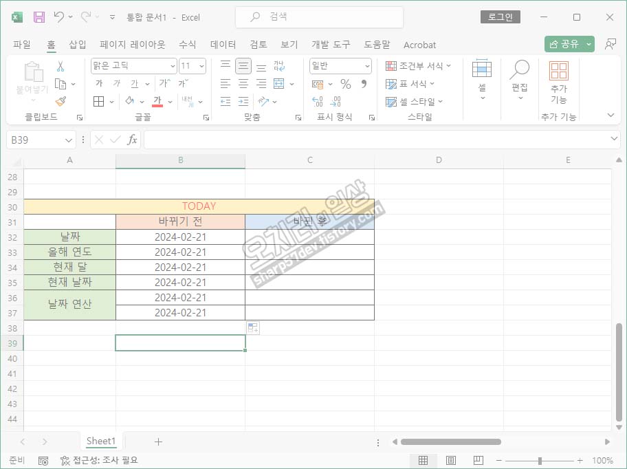 일단 셀 'C39'에 함수 'TODAY()'를 적용합니다.