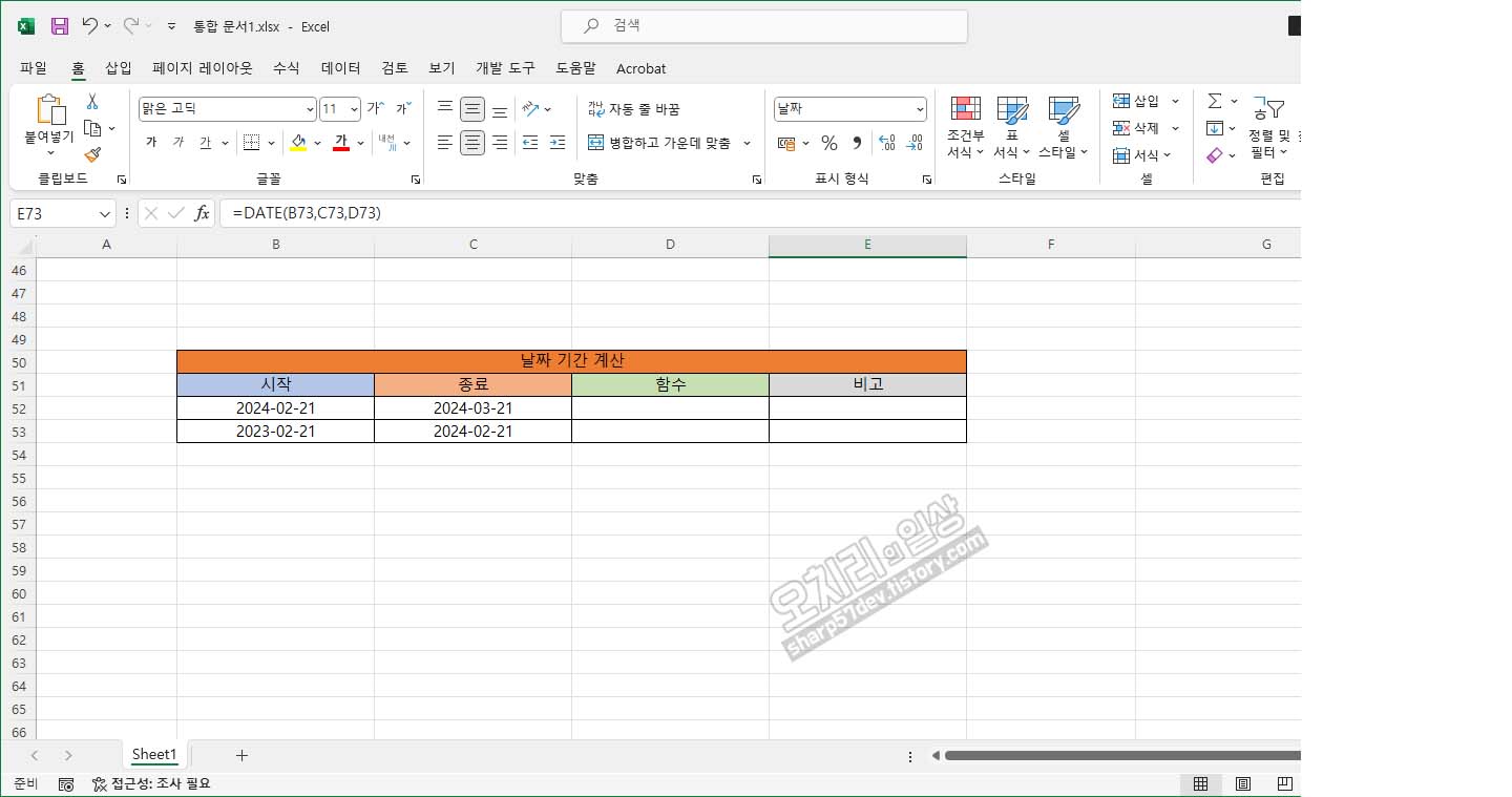 엑셀(EXCEL) 함수 DATE 사용 방법