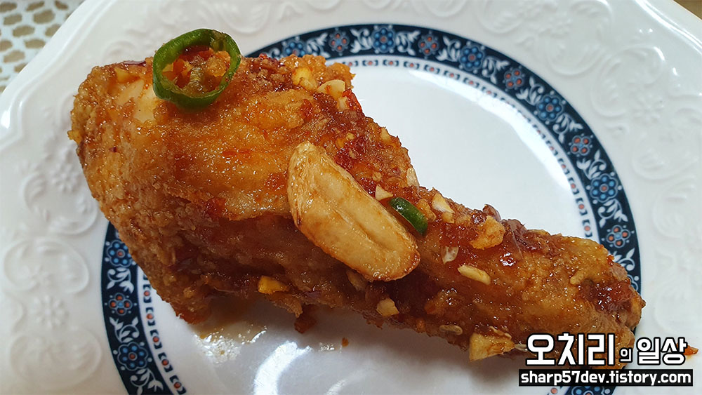 알싸한 마늘간장치킨이라고 하네요.
