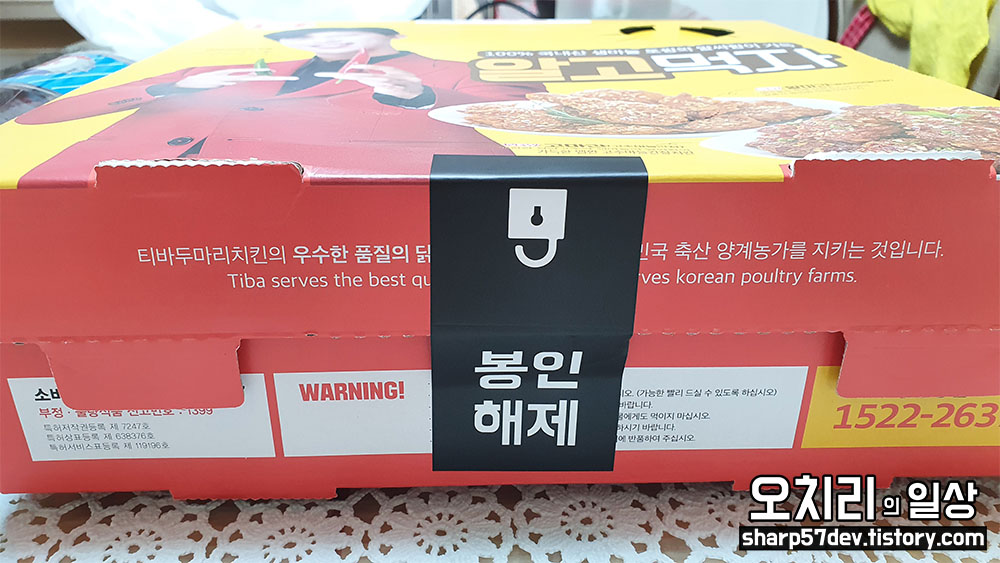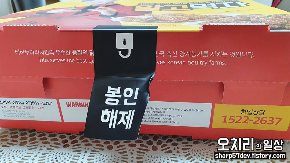 앗!! 봉인이 되어있는 치킨 박스를 확인하였습니다.