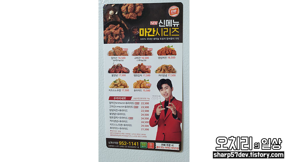 고민없이 바로 티바 두마리 치킨으로 전화를 걸어 주문을 하였습니다.