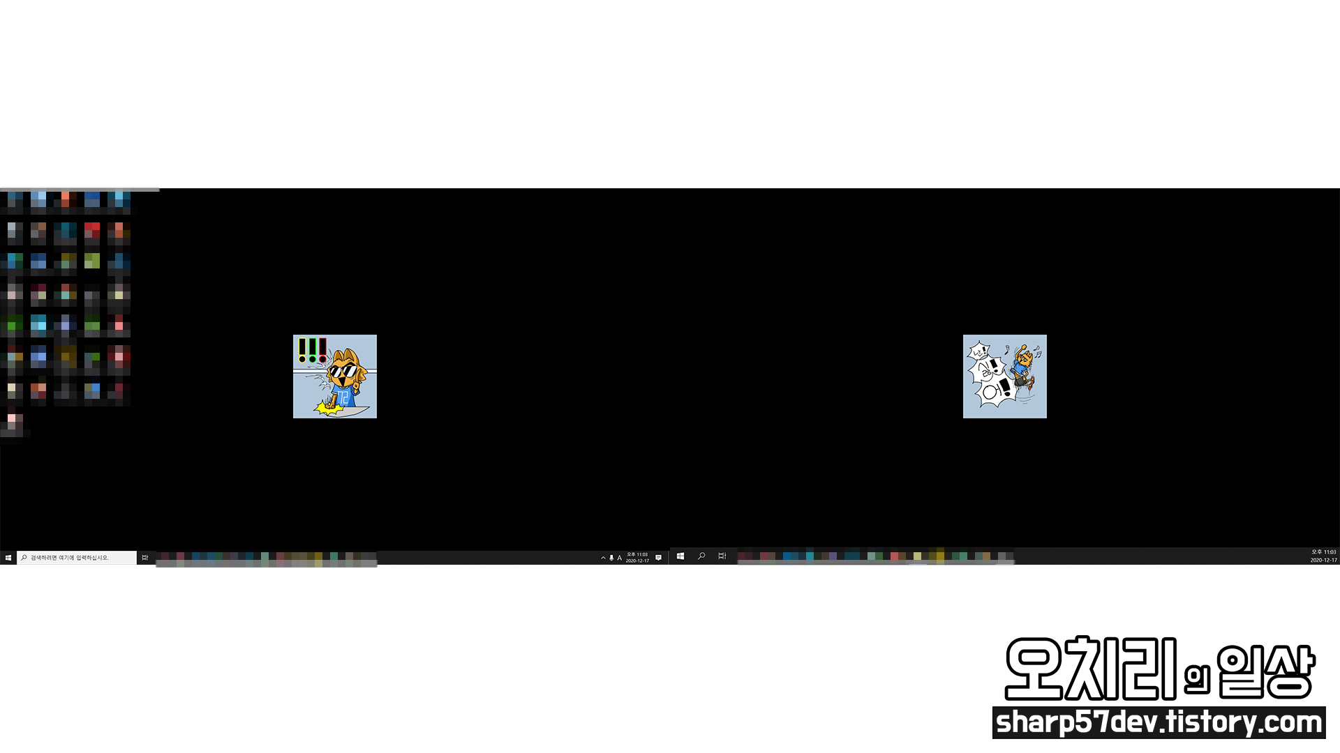 두 모니터 모두 같은 이미지로 윈도우 바탕화면이 설정되었음을 알 수 있습니다.