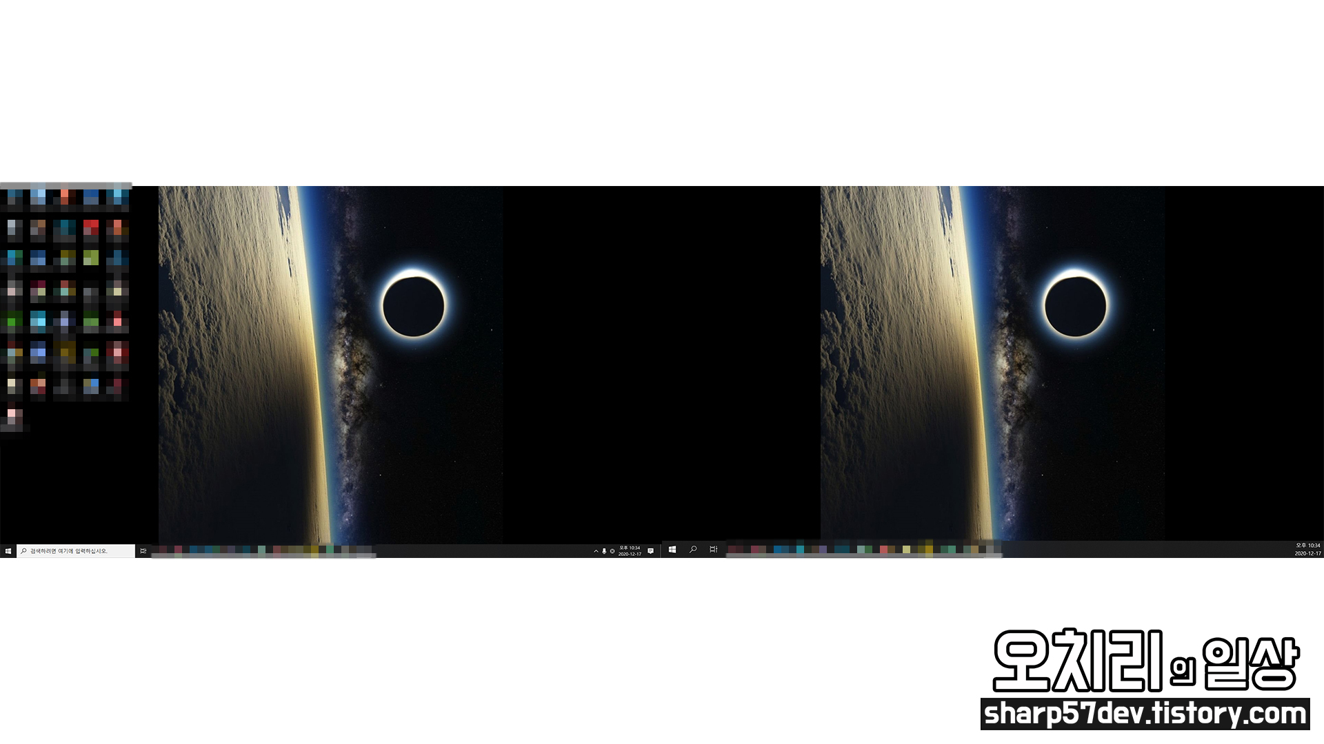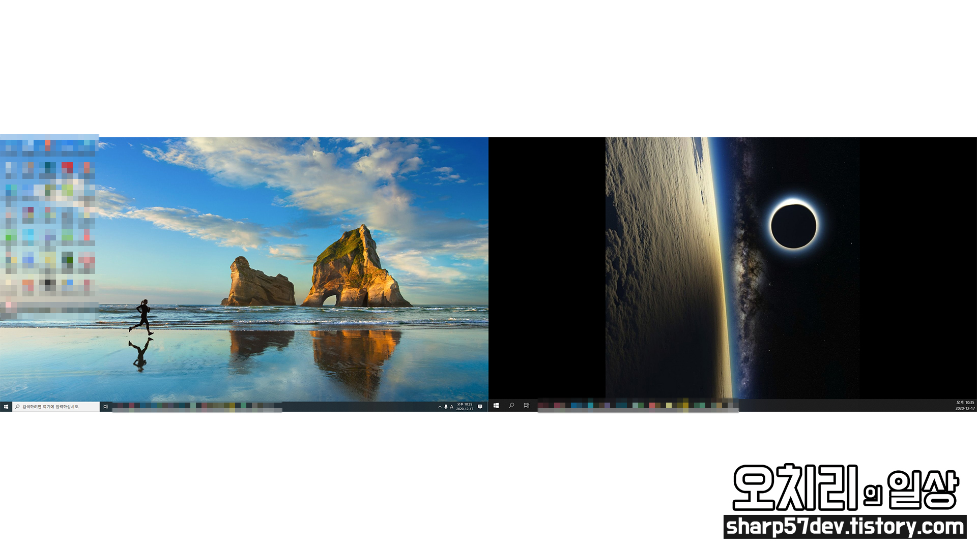 위 이미지는 "모든 모니터에 대해 설정" 했을 때의 윈도우 배경화면입니다.