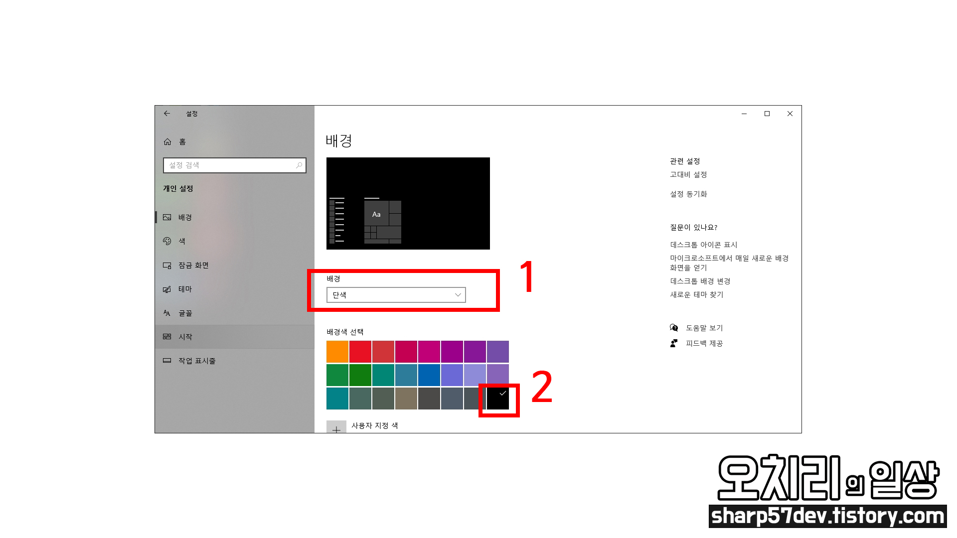 1 - 배경 선택메뉴에서 "단색"으로 선택하고