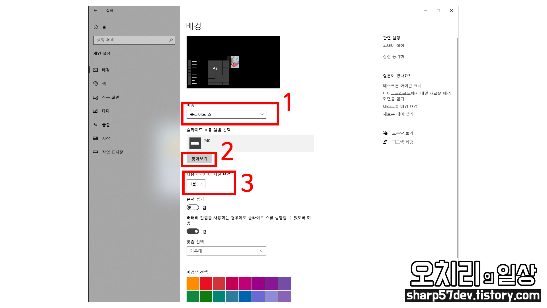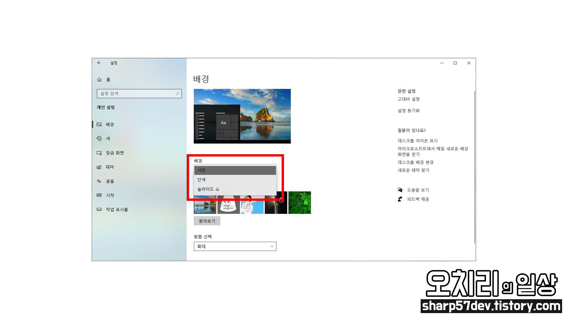 이번에는 배경 선택 메뉴에서 "슬라이드 쇼"에 대해서 알아보겠습니다.