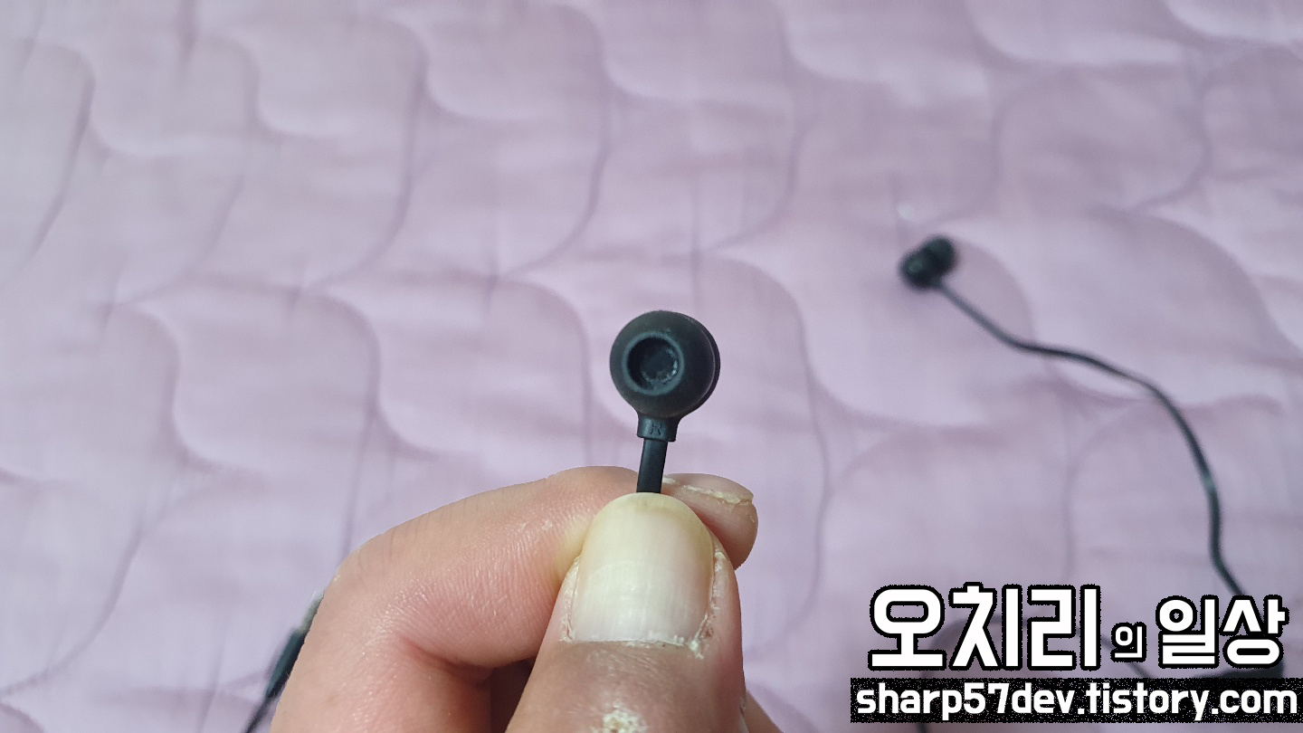 다른 이어폰처럼 오른쪽에 마이크가 있겠다.. 하는 추측으로 왼쪽/오른쪽을 구별해서 사용했습니다.