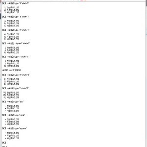 type1 [HTML] 목록 태그 - <ol><ul><dl> 목록 태그 순서대로 또는 순서 없이 리스트 목록을 만들 때 사용하는 태그이다. 태그 태그 태그 태그 ol 은 Ordered List 의 약자이다. 순서대로 리스트 목록으로 만들 때 사용한다. 각 하위 목록은 태그로 감싼다. type (= A, a, i, I, 1) 속성과, start(= 시작할 숫자) 속성으로 여러가지 순서 표기와 순서를 지정할 수 잇다. - 속성값 type="1" start="1" 첫번째 리스트 두번째 리스트 세번째 리스트 - 속성값 type="a" start="1" 첫번째 리스트 두번째 리스트 세번째 리스트 - 속성값 type="A" start="1" 첫번째 리스트 두번째 리스트 세번째 리스트 - 속성갑 - type="i" start="1" 첫번째 리스트 두번째 리스트 세번째 리스트 .. 프로그래밍/HTML 2017. 9. 5. 이전 1 다음 💲 추천 글